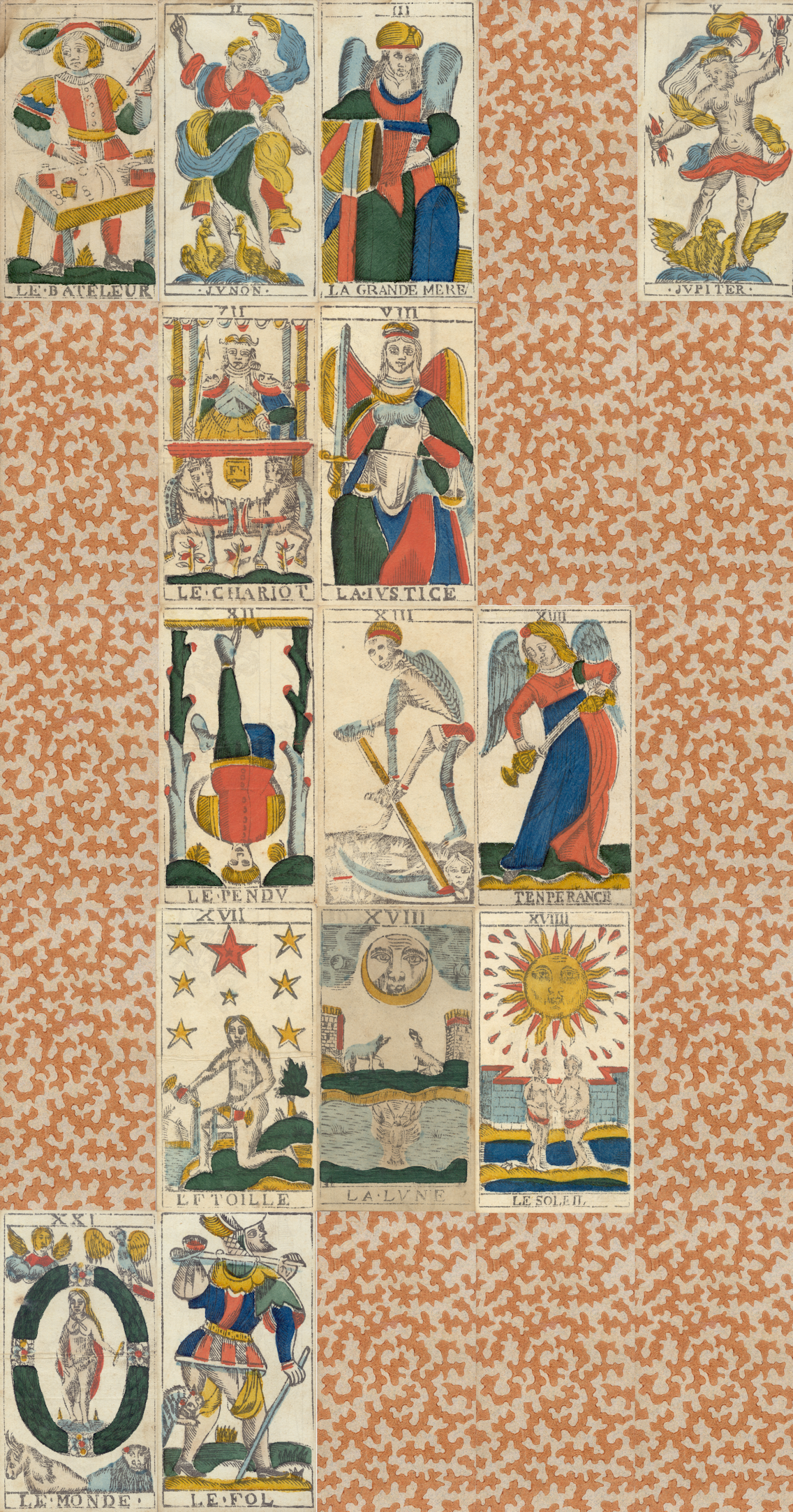 Im Tarot de Besançon ist im Vergleich zum väterlichen "Tarot de Marseille" der Papst und die Päpstin, vermutlich aus religiösen Gründen, rausgeflogen. Ersetzt wurden Sie durch Juno und Jupiter.