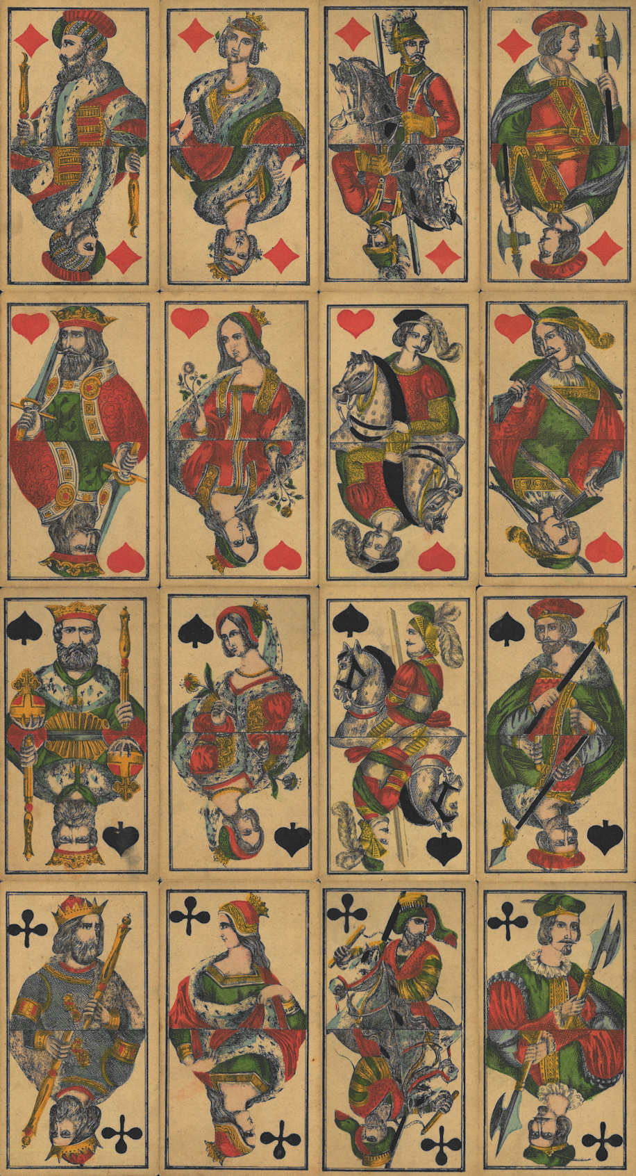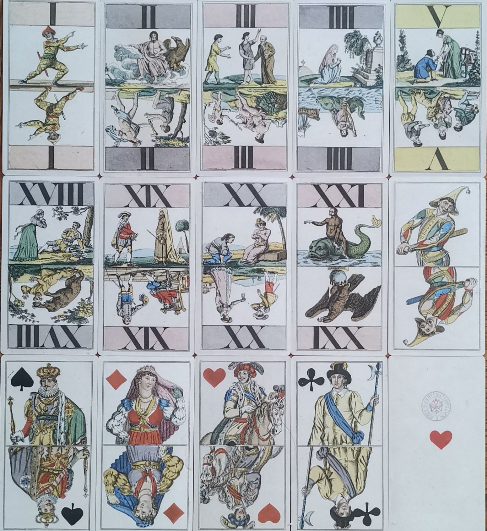 Ob zu dieser Zeit bereits Blätter mit 54 und Bätter mit 78 gedruckt wurden, oder ob die Spieler noch die überschüssigen Karten entfernt haben, ist nicht sicher. Aber irgendwann in der ersten Hälfte des 19. Jahrhunderts wurden auch Blätter mit 54 Karten gedruckt. Möglicherweise war dieses Spiel ein Blatt dieses Überganges.