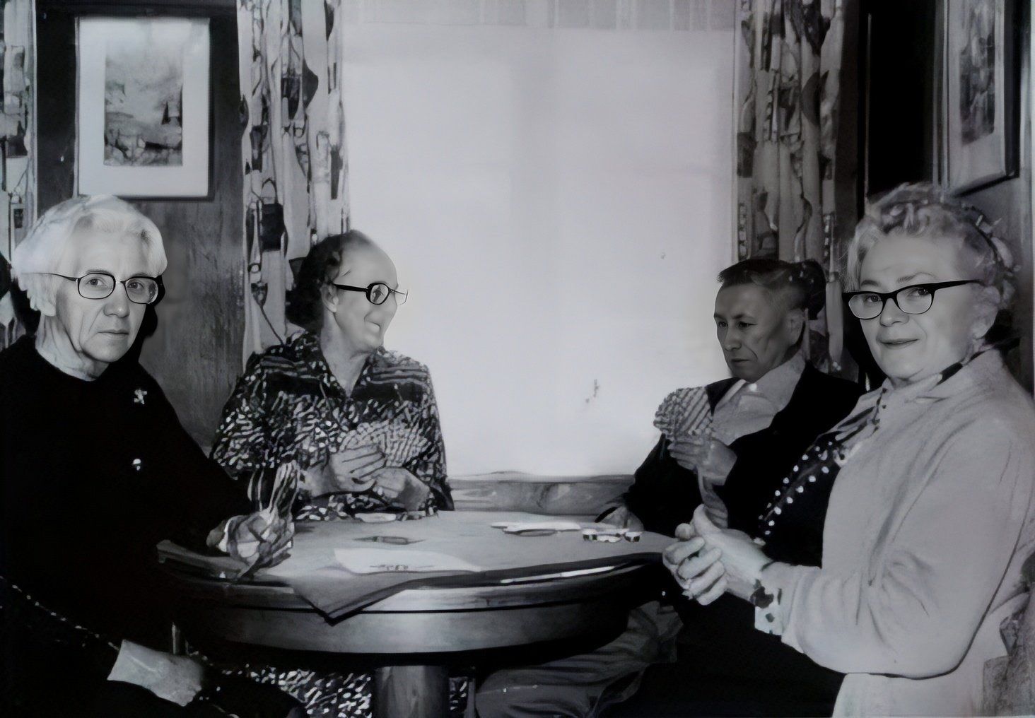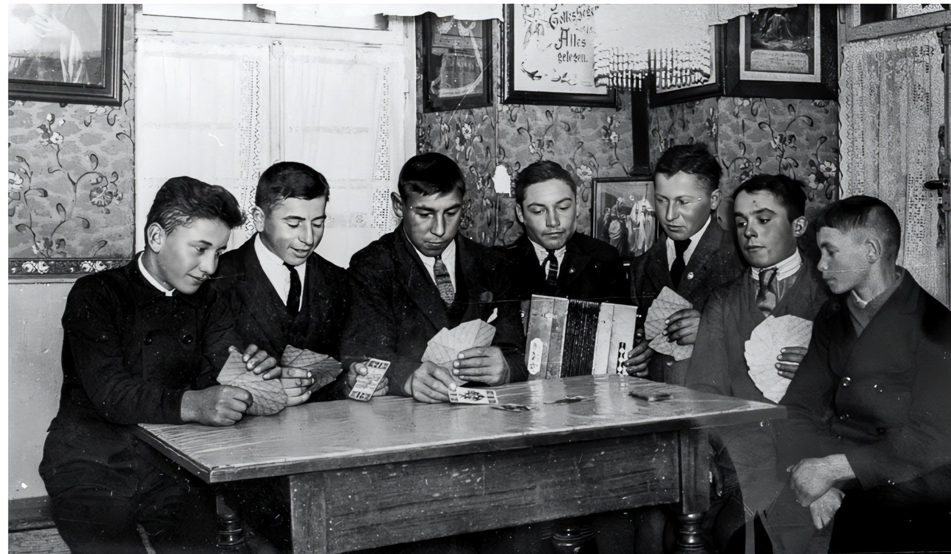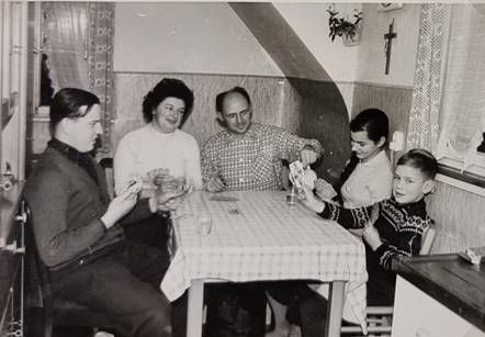 In Bühl gibt es nicht mehr sonderlich viele Cegospieler, daher bin ich Bernhard Falk besonders dankbar für diese Regeln, die er 1962 von seinen Eltern lernte. Das Bild zeigt Bernhard, als Achtjähriger vorne rechts im Kreise seiner Familie. Die Frauen der Familie spielten nicht gerne deshalb hatte Bernhard schon früh die Aufgabe des dritten Mannes übernommen.