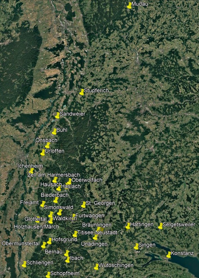Waldkirch liegt im Elztal. Wir haben die Regeln aus Simonswald und Biederbach bereits kennen gelernt und wissen wie unterschiedlich flussaufwärts gespielt wird. Spannend waren für mich persönlich deshalb die waldkircher Regeln, wie sie dort von Richi Burger bei der VHS gelehrt werden. Tatsächlich würde ich diese Regeln als eine gute Mischung der beiden anderen elztäler Gemeinden bezeichnen. Diese Erfahrung kann häufig gemacht werden in größeren Ortschaften, in der die Leute zum Arbeiten aus den nachbarorten kommen und ihre Regeln von dort mitbringen.
